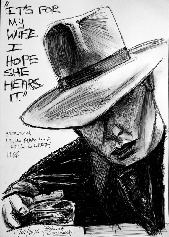sketching, primarily using black pen and wax crayons, on the Later